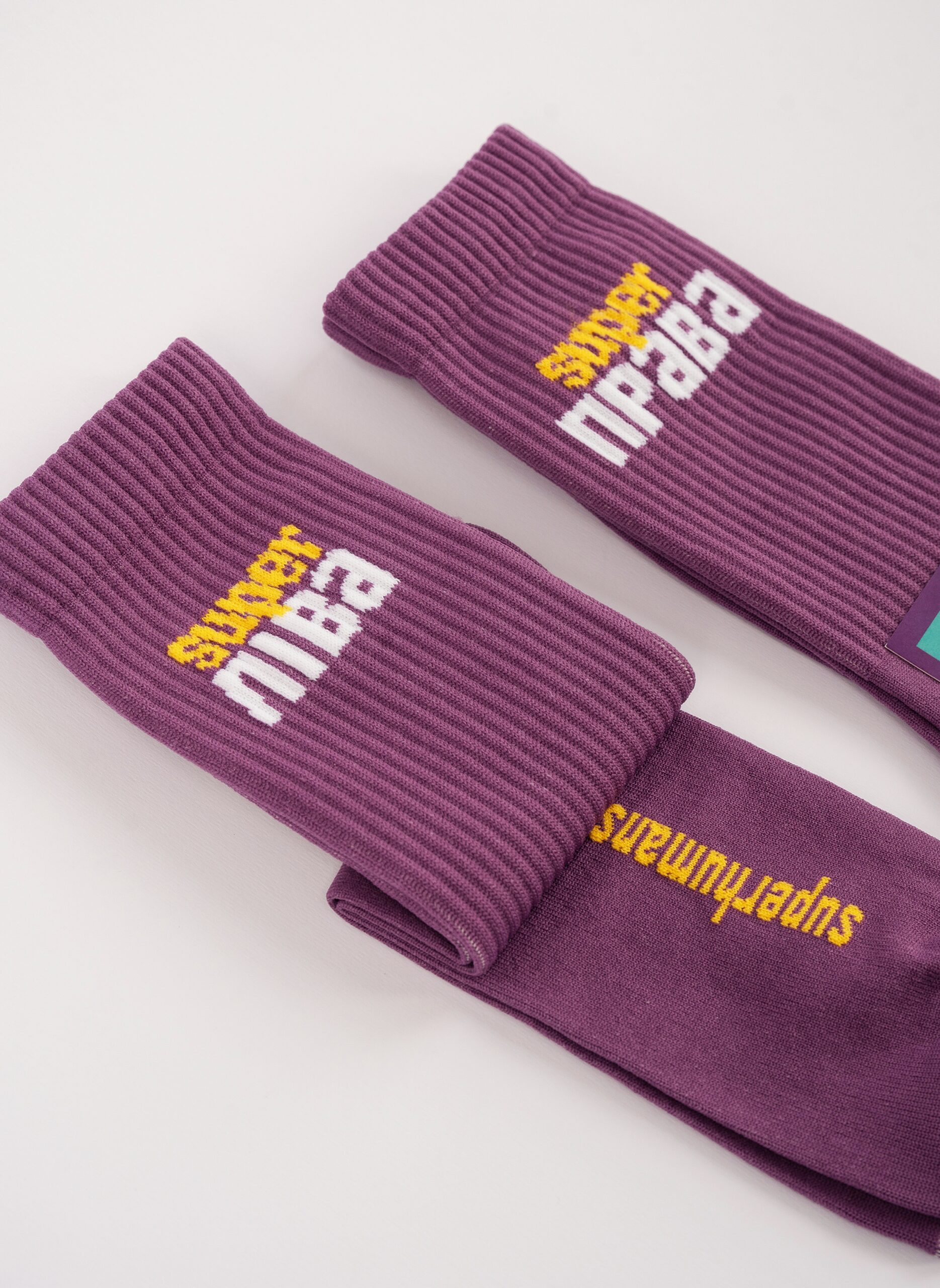 Bright Superhumans socks inspired by our Supers’ favorite phrases.