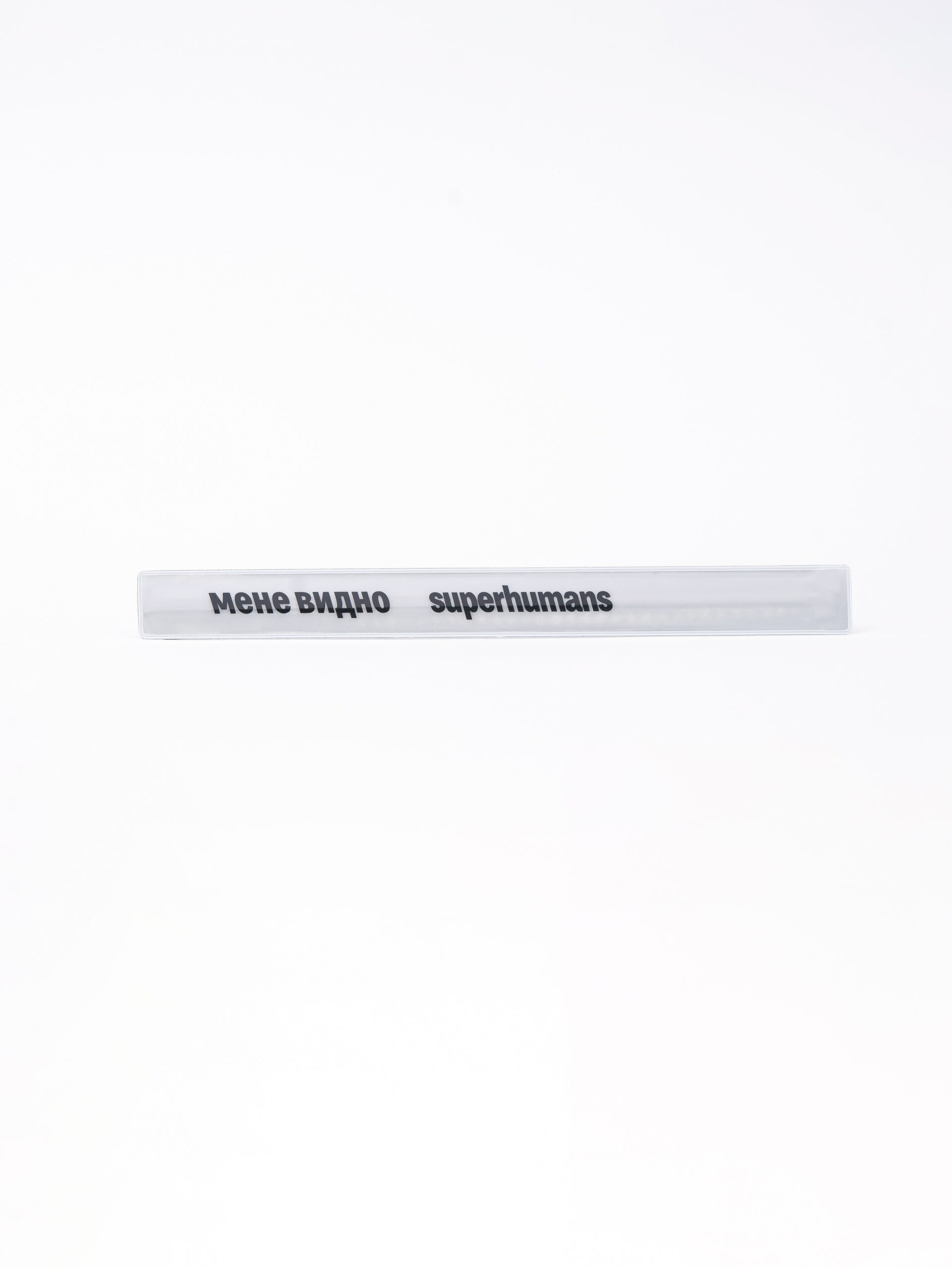 The Superhumans Reflective Bracelet easily snaps into place with a single motion. This functional accessory enhances visibility and ensures safety in low-light conditions.